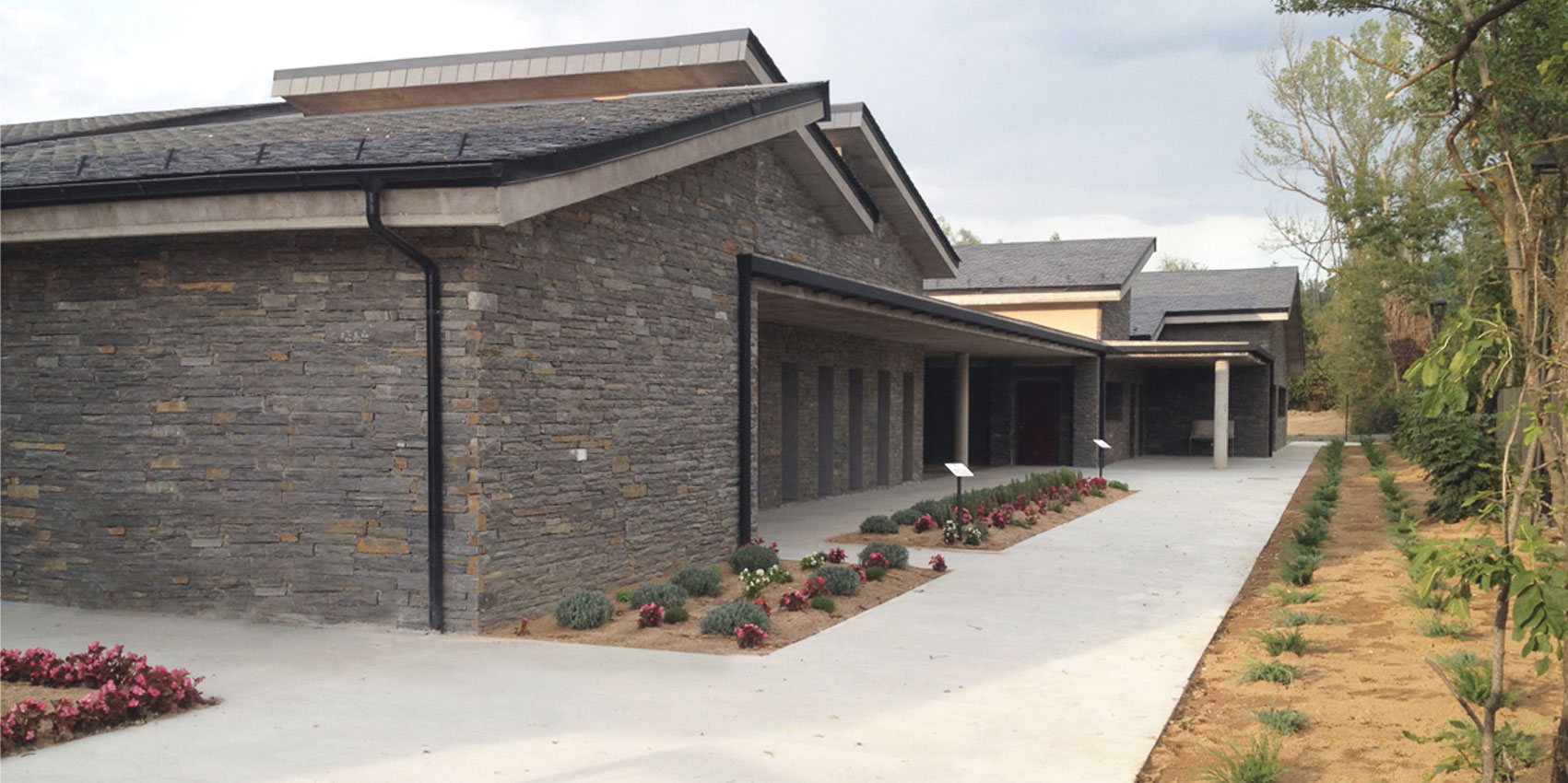 La Escuela de Santa Cecilia nace de la adaptación de la arquitectura y los materiales propios de Cerdanya, a los nuevos métodos constructivos. Paredes de piedra y cubiertas de pizarra son los protagonistas exteriores.