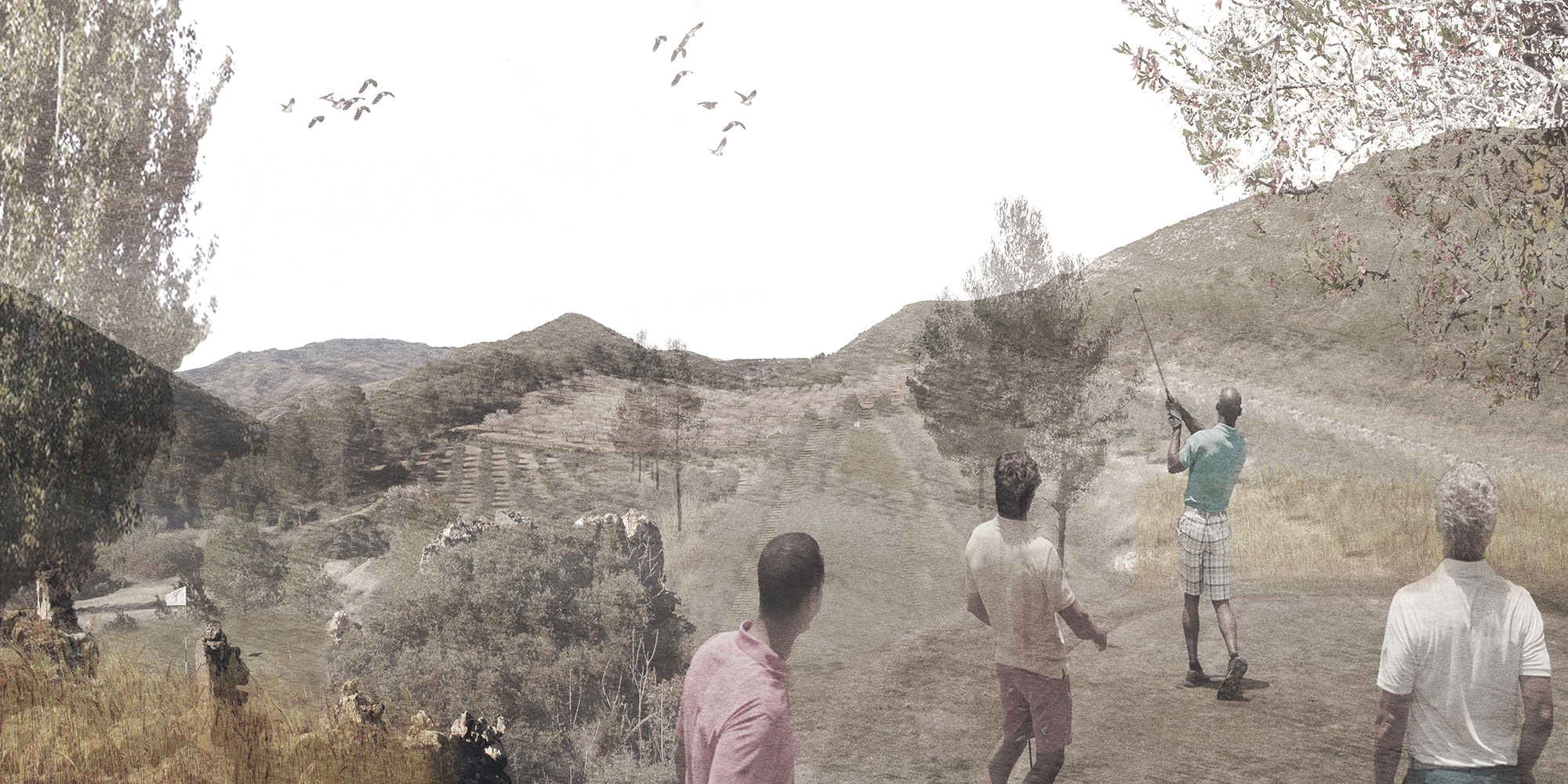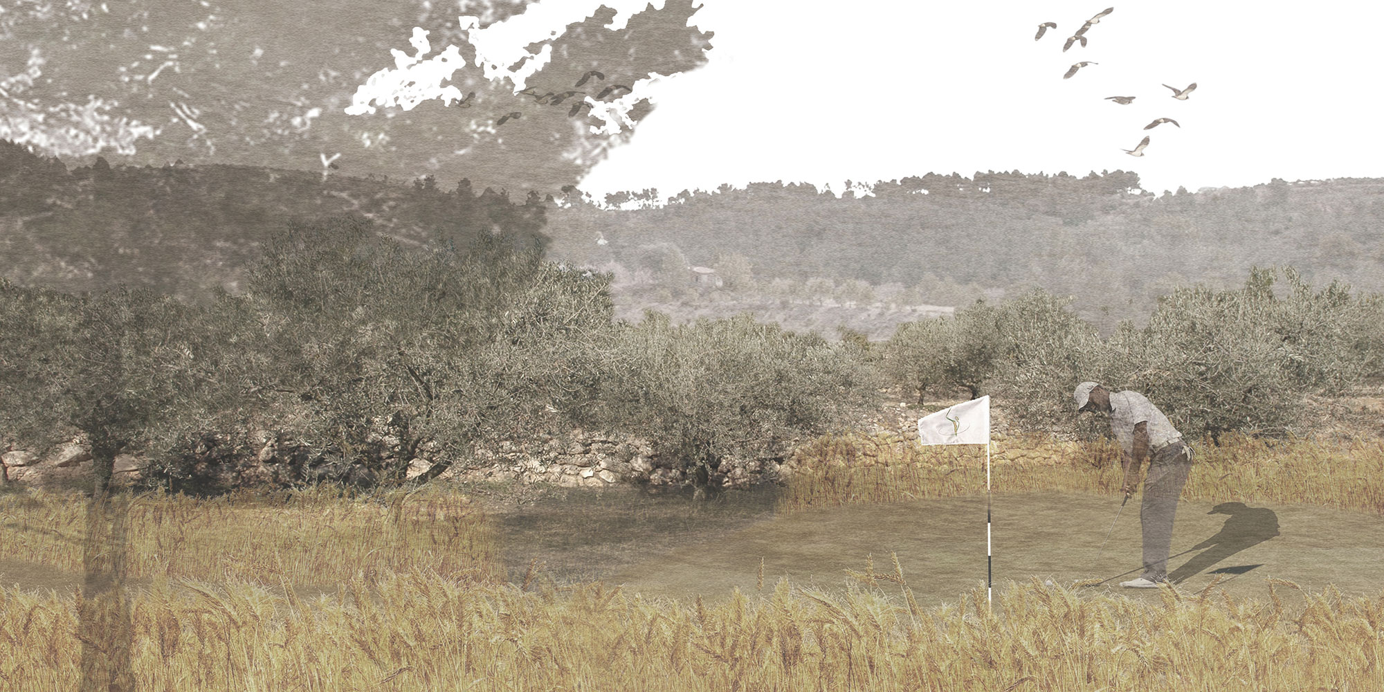 El Golf & Hotel *****, está situado en el centro del valle. El proyecto tiene como objetivo integrar el campo de golf al paisaje existente. Para esto, se ha diseñado en relación con los restos agrícolas del lugar. El recorrido del circuito discurrirá entre los árboles frutales y los campos de cereales, potenciando la agricultura de la zona y revalorizándola.